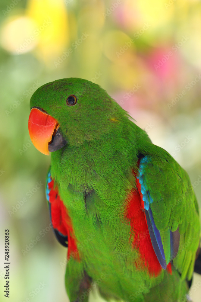 The Eclectus Parrot Eclectus Roratus Portait Of The Green Male Eclectus With Color Background Stock Photo Adobe Stock